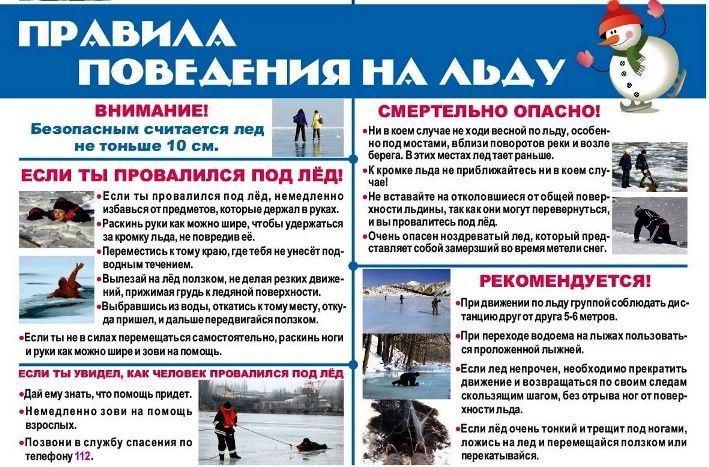 - Не выходить на лёд в тёмное время суток и при плохой видимости (туман, снегопад, дождь).